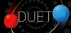 Duet is a 2013 action game by Australian game developer Kumobius for iOS and Android.[2][3] Players control two coloured orbs, guiding them to avoid incoming obstacles. Its Android version was first released as a part of Humble Mobile Bundle 6.[3]