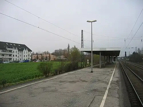 Duisburg-Rahm station is a station in the suburb of Rahm of the city of Duisburg in the German state of North Rhine-Westphalia. It is on the Cologne–Duisburg railway and it is classified by Deutsche Bahn as a category 5 station.[1] The station was opened on 30 September 1973.[4]