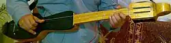Duitara (called as Ka Duitara) is a four-stringed Khasi and Jaintia folk musical instrument of Meghalaya that resembles a guitar. The term seems similar to the dotara instrument played in the neighboring states of Assam and West Bengal. The duitara consists of medium soft wood, the hollow in the belly of its main body is covered with dried animal skin, and its neck has at its end four holes in which wooden pegs hold the strings in tune. The strings are made of 'muga' silk.[1] The folk musician Skendrowell Syiemlieh was an accomplished artist of this instrument. Duitara is unlike the bow-shaped veena, santoor, ektara, tambura, jantar, sarod and sarangi.[2]