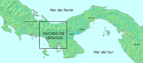 In 1560, King Philip II created the Province of Veragua from the territory of the duchy, which was placed under the jurisdiction of the Royal Audiencia of Panama. This province corresponds approximately to the present-day Panamanian Veraguas Province.