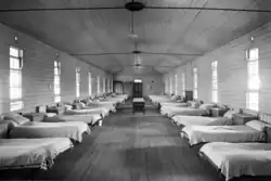 The asylum occupied most of the current Dunwich township. There were many buildings with wards for men, women and Asiatics. It had a kitchen, bakery, laundry and other service buildings including a power station from 1926. It had a public hall, recreational facilities and a visitor centre for social activities. A farm with associated outbuildings provided meat and dairy products.[2] A 1913 map shows it occupying the coastal area from Dunwich Cemetery down to the present day jetty and inland to approximately the present day Mitchell Crescent and Barton Street. Swamps are shown beyond the boundaries.[7]