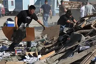 The district court judge, now retired, continued his interest by sometimes visiting the community. The court-appointed receiver, speaking in 2010, reported considerable progress in mitigating conditions, for example, 400 dogs were neutered or spayed, and 145 adopted. Efforts by the community with outside assistance have greatly improved conditions, however, raw sewage still drains directly from a system of plastic pipes into an open lagoon. Riverside County plans to use federal and state redevelopment funds to facilitate better mobile home facilities nearby, collapsed in 2012 due to loss of funds resulting from the 2008–12 California budget crisis.[5] California redevelopment agencies, which sometimes used funds for unnecessary projects but also for badly needed housing, had been shut down.[6] Plans for relocation are further complicated by the illegal status of some of the workers and reluctance by the Purépecha people to break up their community.[3]