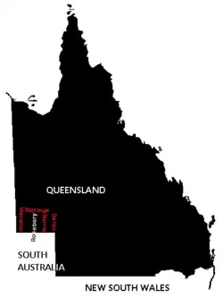 1. ^ Queensland showing counties / compiled and published at the Survey Department, Brisbane, Brisbane : Survey Dept., 1900.