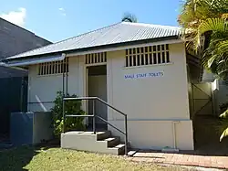 The addition of these toilet blocks resulted from the Queensland Government's plan to improve toileting amenities and sewerage connection at state schools during the Interwar period, and resulted from two government programmes. A DPW building programme to connect metropolitan state government buildings, including state school buildings, to the Brisbane City Council's sewerage system, commenced about 1924–25. Its aim was "to bring all sanitary conveniences up to the approved standard and to connect them with the Council's sewerage system, thus providing both the economical and hygienic advantages of the sewerage installation".[54] The second initiative was the Queensland Government's Works Programme from 1932 to revive the building trade during the Great Depression, which included £250,000 allocated for the construction of new buildings throughout the State, including sewerage installations at schools. Other schools that received upgrades toilet facilities include Junction Park State School and Coorparoo State School.[55][56][1]