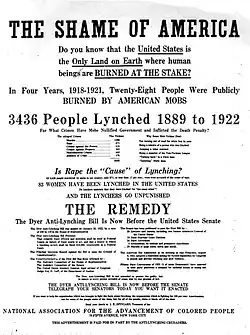 {{cite book}}:|website=ignored (help) - ^ "NAACP History: Anti-Lynching Bill". www.naacp.org. Archived from the original on 2015-05-16. Retrieved 2015-05-12.