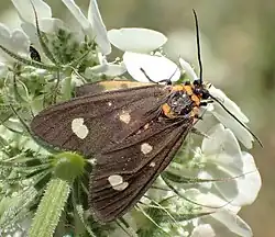 Dysauxes famula is a moth of the family Erebidae. It was described by Christian Friedrich Freyer in 1836. It is found in the Transcaspian Oblast, the Caucasus, Iran, Asia Minor, Palestine,[1] France, Switzerland, Italy, the Balkan Peninsula, Ukraine, as well as on Corsica, Sicily, Crete and Cyprus.[2]