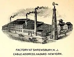 It was in Shrewsbury, NJ that Hazard and Company purchased a 165-acre (0.67 km2) tract on which it built "extensive factories, including handsome offices and one of the best-equipped laboratories in this country." The firm also grew many of its own agricultural produce on this Shrewsbury tract.[3]