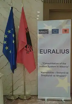 EURALIUS, also known as the Consolidation of the Justice System in Albania, was a technical assistance project funded by the European Union that sought the strengthening of the Albanian judiciary.[1] EURALIUS focused on improving and guaranteeing the independence, transparency, efficiency, accountability and public trust in the Albanian judicial system, in line with the EU acquis. EURALIUS was composed of long-term international experts from various EU member states and of Albanian jurists who act as national experts, as well as support staff consisting of project assistants, translators, etc.