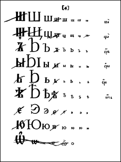 - ^ [М. Т.] Каченовский, “Исторический взгляд на Грамматику Славянских наречий”, Труды О-ва любителей Российской словесности при имп. Московском университете, ч.IX (1817), pp.17-46. He was referring specifically to the spelling Этѷмоло́ґїѧ in the 1648 grammar mentioned above: “Каким образом появляется здесь обратное Э, которое в азбуке Мелетием обойдено? Разве нужно, при мягком Ѣ, при твердом Е, еще одно твердое Э?” so how far his remarks extend to the Russian of his own day is debatable. The reference to "a soft ѣ and a hard е" was referring to the pronunciation of Church Slavonic current in his day (which is still maintained by the Old Believers). That may have still been regarded as the literary ideal: see Б. А. Успенский, Архаическая система церковнославянского произношения, Москва, 1968, especially pp.29-35.