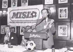 ![]() Foreman at a 1984 Major Indoor Soccer League press conference in New York City applauding the admission of four teams to the MISL | |