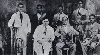Founded 1871 in Matanzas by Miguel Faílde, the official originator of the danzón.[9] His band was composed mainly of wind instruments, and therefore was a típica. Its initial members were: Miguel Faílde (cornet); Pascual Carreras (ophicleide); Pancho Morales (1st violin); Juan Cantero (2nd violin); Anselmo 'Frijolín' Casalín (1st clarinet); Eduardo Faílde (brother, 2nd clarinet); Cándido Faílde (brother, trombone); Eulogio Garrido (double bass); Andrés Segovia (timpani); Isidro Acosta (güíro).[10]
