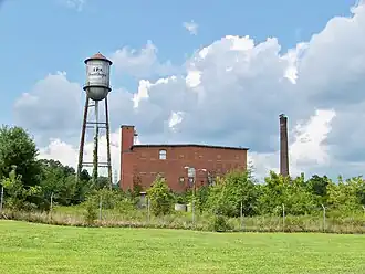 Easley Mill is a historic mill complex in Easley, South Carolina. The mill was the first of three built in Easley between 1899 and 1910. The main building was completed in 1900, and is a four-story brick structure designed by preeminent mill architects Lockwood, Greene & Co. It was built during a boom in the textile industry across the Southern United States; more than 70 mills were opened in South Carolina alone between 1895 and 1903. The mill met with immediate success, including large shipments for export to China. By 1907, the mill contained over 37,000 spindles and 1,000 looms, and employed 500. It was sold to Woodside Mills of Greenville in 1920, and to Dan River, Inc. in 1956, who operated the mill until 1990. The mill has a shallow-pitched hip roof with bracketed eaves. Most of the arched window openings have been bricked over. Other structures on the site include a one-story office building, a warehouse, smokestack, an ice house, water tower, and monument to the mill's founder, John Mattison Geer.[2] The mill was listed on the National Register of Historic Places in 2013.[1] A proposal was made to convert the building to apartments in 2019.[3]