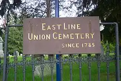 East Line Union Cemetery , also known as the Armstrong Corners Cemetery is a cemetery, located at the corner of Round Lake road (county road 80) and East Line road (county road 82) in the southwest corner of Malta, New York, in Saratoga County. The cemetery was designated as a historic landmark by the town of Malta in 1993.