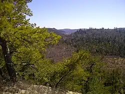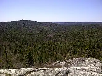 ![]() Typical softwood-forested hills and valleys of the Eastern Shore Granite Ridge. | |