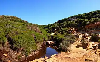 The Eastern Suburbs Banksia Scrub, which also incorporates Sydney Coastal Heaths, is a remnant sclerophyll scrubland and heathland that is found in the eastern and southern regions of Sydney, New South Wales, Australia. Listed under the Environment Protection and Biodiversity Conservation Act 1999 as and endangered vegetation community and as 'critically endangered' under the NSW Biodiversity Conservation Act 2016, the Eastern Suburbs Banksia Scrub is found on ancient, nutrient poor sands either on dunes or on promontories.[1] Sydney coastal heaths are a scrubby heathland found on exposed coastal sandstone plateau in the south.[2]