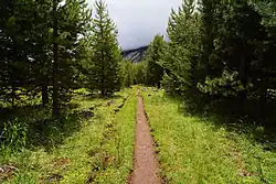 The valley contains a mosaic of meadows that are likely related to a fire that burned through the area in the 1980s. This fire killed most of the trees, raising the water table, and creating the meadows. Debris and deadfall from burned trees are common in many of the meadow areas.[2]
