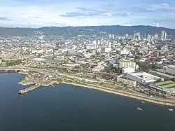 "Ceboom" is a combination of the term Cebu and boom. It is primarily described the province's rapid economical development in 1990. Before the event of Ceboom, Cebu was primarily crossed by Typhoon Mike.[9] It damaged thousands of houses in Cordova and leaving ships sinking. After the incident, renovation and construction were started and two major shopping companies opened in Cebu, ShoeMart or SM (now as SMPH) and Ayala opened that period.[10] More projects were proposed and the Marcelo Fernan Bridge was constructed then after.
