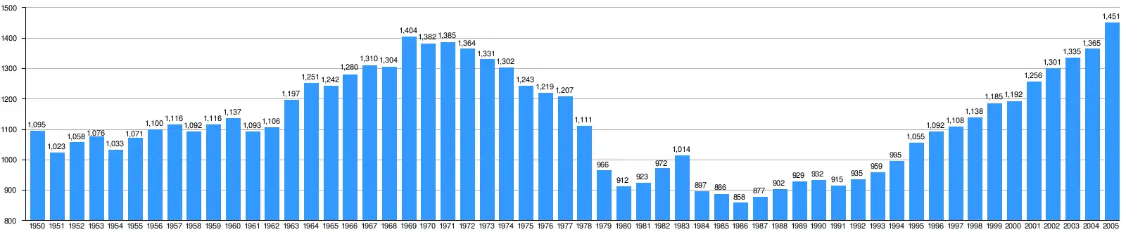 | 1980 | 5.9 | 525 | 7.5 | n/a | ||