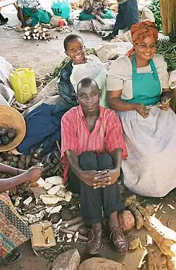 The informal economy, which is predominantly female, is broadly defined as a group of vulnerable individuals without protections in regards to their work.[44] Women face a plethora of barriers specific to gender when attempting to access the formal economy of Uganda, and research revealed prejudice against lending to women in the informal sector.[45][46] The agriculture sector of the Ugandan economy, which composes roughly 40% of the country's GDP, is largely fulfilled by women laborers, especially in managing products, marketing, and the crop sub-sector.[47] 76% of women work in the agriculture sector and roughly 66% of men do, and women provide for 80% of food crops and 60% of traditional exports such as coffee or tea.[45] In the formal, non-agricultural economy, men constitute 61% of the workforce, whereas women predominate the informal economy, and this can be attributed to the lack of equity between men and women in the country.[47] The Uganda Bureau of Statistics reported, when looking at the urban workforce in 2015, 88.6% of women were employed informally, and 84.2% of men were.[48] Women are unable to enter into certain sectors, especially in the formal economy, due to the inability to provide substantial initial funding, and remain in the trade and service sectors of the economy. Comparatively, men dominate the more profitable sectors, such as manufacturing.[45] Women traders make up 70% of those in markets and 40% in shops in addition to dominating other sectors such as the service industry, crafts, and tailoring.[49]