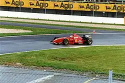 At the Canadian Grand Prix Irvine was involved in another first lap incident, this time with McLaren driver Mika Häkkinen. He was back on the podium with third place at the French Grand Prix, before a run of seven races where he was either out of the points or out of the race. During the summer, it was announced that Irvine would remain at Ferrari for 1998.[34] His run of poor results ended with a third-place finish at the Japanese Grand Prix, and he concluded the season with a fifth place at the European Grand Prix.[35] Irvine finished seventh in the Drivers' Championship with 24 points.[17]