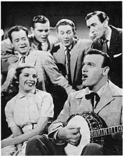 ![]() The Gordonaires (AKA The Jordanaires), Betty Johnson, and Eddy Arnold as themselves in the episode, "Sunday at Home" | |