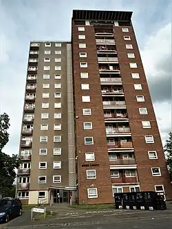 Eden Court is a high-rise residential building belonging to Warwick District Council located in Lillington, Leamington Spa, England. Construction on the 41 m (135 ft), 14 storey, block of flats began in 1959[1] and was completed the following year.[2] The tower was constructed by the former Royal Leamington Spa Borough Council at the same time as a wider development known as The Crest. The area also comprises the eight storey Ashton Court and the seven storey Southorn Court and low rise housing. A public house named the Jack and Jill was opened in 1966 to serve the area,[3] along with a convenience store. The pub was closed in 1996 but the shop remains. The 67 bus route operated by Stagecoach links the area to Cubbington and Leamington town centre.