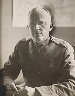 He was promoted to colonel in the National Army on July 6, 1917, exactly three months after the American entry into World War I. He received a brevet to brigadier general on December 17, 1917.[4] Upon the country's entry into World War I, he recruited the 15th Engineers, a railway construction regiment, and led it to France to join the American Expeditionary Forces (AEF). He directed American construction and forestry work there for a year and received the Army Distinguished Service Medal, the citation for which reads: