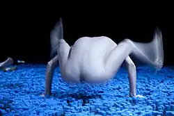 Braun's most internationally successful production is Luvos, vol.2., developed from the piece Lufus in Salzburg in 2001, that establishes a series of innovative, purely female body illusion theatres, including planet LUVOS (2012), Close Up (2015), Close Up 2.0 (2017), Fanghoumé (2019) and Hydráos (2020) and the short movie LUVOS migrations (2022/23). In these series, Braun and her company conduct continuous research into the visual overcoming of bodily boundaries over more than two decades.[13] LUVOSmove® is the trademarked name for this very special, purely female body language which has also been the subject of scientific research since a colloquium in 2021 at the Anton Bruckner University Linz.[14]