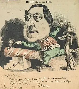 Appreciated by Rossinian scholars[3] for the rarity of certain documents, the Michotte collection essentially contains pieces from Rossini's library: handwritten and printed scores, books, libretti and various publications, correspondence, iconographic material and various objects.