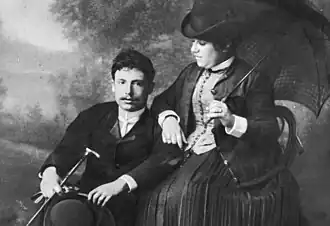 On February 28, 1885 he married Matilde Serao, the best-known woman writer in Italy at the time, to avoid a scandal about the writer's pregnancy (later not carried to term).[1] From marriage four children were born. Scarfoglio, however, had extramarital adventures, including an affair that lasted for about a year with Gabrielle Bessard, a French singer, who, when he decided to break off the relationship in 1894, killed herself in front of his door, leaving him the child born of their relationship. The child, Pauline, was then raised in the family. The marriage and collaboration with Serao broke down in 1904.[1]