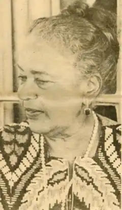 On the home front, Lady Allan served on the board of the Jamaica Social Welfare Commission and chaired the Home Economics Committee.[4] In 1949, the JFW initiated an innovative program of mass weddings[18] in an effort to secure and protect the right of support of women and children by eliminating illegitimacy for those who were married under common law. Lady Allan participated as one of the organizers of these mass marriage ceremonies along with Lady Huggins and Mary Morris Knibb, hosting over 3,000 weddings within two years.[19][20] Unlike many other Afro-Jamaican women who were prevented from joining certain clubs or organizations because of their colour,[21] Lady Allan's social status allowed her to break colour lines, such as at a 1952 women's International Relations Luncheon hosted by the Jamaica Women's Club (JWC). The all-white JWC admitted women who were light-skinned enough to pass as white or Asian, but had only one black member, Lady Allan.[22]