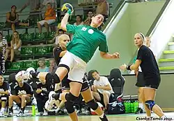 The Brazilian left back won the gold medal in three editions of the Pan American Games, Rio 2007, Guadalajara 2011 and Lima 2019. She also participated in four Olympic handball tournaments, reaching the quarterfinals of London 2012 and Rio 2016.[14] In 2013, she won the World Championship and was elected the Most Valuable Player of the competition.[15]