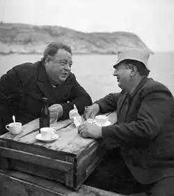 ![]() Persson (left) with Allan Waldner at the set of Baldwin's Wedding (1938). | |