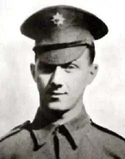 Three of the four Irish Guards tanks were badly hit, while Charlton's had already been disabled by a complete electrical failure before the attack began. Charlton was ordered to dismount the turret 0.30 Browning machine gun and support the infantry.[2] The Irish Guards were in danger of being overrun. Charlton, on his own initiative, took the machine gun and advanced in full view of the attacking Germans, firing from the hip and inflicting heavy casualties. The lead German company was halted, which gave the rest of the Guards a respite in which to reorganise and retire. He continued firing, even when he was wounded in his left arm. Charlton placed the machine gun on a fence, where he launched a further attack, before his left arm was hit again, becoming shattered and useless. Charlton fought on, until a further wound and loss of blood resulted in the guardsman collapsing. His stand enabled the rest of the Irish Guards troop and infantry to escape. He later died of the wounds in enemy hands.[3][4]