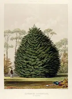 The work is illustrated with William Richardson's hand-coloured lithographs of trees shown in their native habitat or under cultivation in British gardens. The Pinetum Britannicum is regarded as a landmark publication on conifers, and both Napoleon III and Queen Victoria subscribed to its first edition.[1]