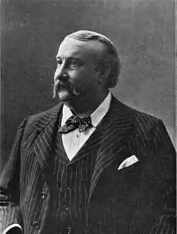 In March 1890 his 'Preislied' from Meistersinger was the key attraction at Crystal Palace.[15] In July 1890, Lloyd 'sang well', but tended to 'jingoism', 'genteel piety' and 'sentimentality' in the Lohengrin Act 3 under Richter, but 'he was not Lohengrin.'[16] In March 1891 his Tannhäuser in a concert performance of the last act was 'beyond cavil'.[17] At the Richter concert of June 1891 he sang Tannhäuser's Rome Narrative and the Siegfried forging music 'very tunefully and smoothly, without, however, for a moment relinquishing his original character as Mr Edward Lloyd.'[18] In the Lohengrin and Tannhäuser third acts repeated at Queen's Hall in May 1894, Lloyd was 'playing a little to the gallery by a style of declamation not exactly classic, though sufficiently sincere and effective.'