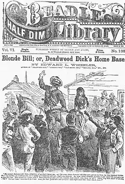 Wheeler was born in Avoca, New York[1] and later managed a theater company in Philadelphia. He created the seminal character of Deadwood Dick, during a period when the country was fascinated by the Black Hills region of the American west after Custer’s defeat at Little Bighorn. Wheeler had never been to the Black Hills. He originally created Deadwood Dick as a character for his theater troupe, and later made him the focus of a dime novel series.[2] The first episode was the first issue of Beadles Half-dime Library.