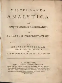 - O'Connor, John J.; Robertson, Edmund F., "Edward Waring", MacTutor History of Mathematics Archive, University of St Andrews