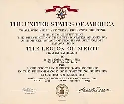 | Legion of Merit with one Oak Leaf Cluster | |