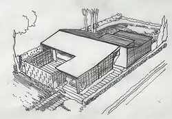 A house designed for Carol and Joan Jacobi on the slopes of Mount Cootha was acknowledged to be one of the firm’s exemplars for regional modern residential projects. The design of the house contributed to the formal transformation of the traditional "Queenslander" – pyramid roof, surrounding verandas on three sides and floor raised on stumps. Particular attention was given to acoustic conditions for the enjoyment of recorded music. This resulted in an open "pavilion" style, where a diagonal split through the overall plan was strategically devised under a low-rise pyramid roof.