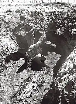 As an archaeologist he collaborated during World War I with the archaeological service of the British army based in Thessaloniki and excavated in Paleo Faliro,[3] where in 1915 he found skeletons of victims who had been buried,[4] in Amphipolis, where in 1920 he excavated a Basilica and found a building of the Early Christian period,[5] in Edessa during the period 1922-1923,[6] in Chalkidiki and others.[7]