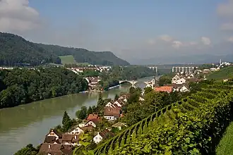 The municipality sits on the banks of the Rhine and has historically been an important bridge over the river. It is made up of the sections of Städtli, Burg, Steig and Wiler on the right bank and the section of Seglingen with the hamlet of Tössriedern on the left bank.