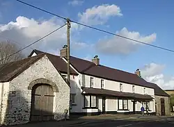 The Serjeants Inn, now a private residence, was a Grade II-listed[17] public house dating back to the 17th or 18th century, so named because the Cemais Assizes were held there. It closed in the 1990s. To the rear of the inn is a former meeting house which served as a chapel and a school in the 19th century.[18] The coach house on the west side of the inn is also Grade II-listed,[19] as is the Armoury, or former stables.[20] The Butcher's Arms, the village's other pub, featured in a 2004 Canadian Visa campaign highlighting difficult-to-pronounce placenames around the world. There was irony in the fact that the pub did not accept Visa cards.[21] The Butcher"s Arms closed in 2016.[22] The village shop and Post Office closed in 2009.[2]