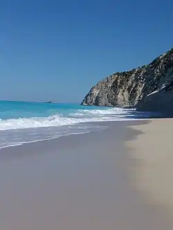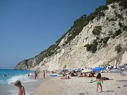 Egremni or Egremnoi (Greek: Εγκρεμνή or Εγκρεμνοί) is a remote beach located on the south-western coast of the Ionian island of Lefkada, north-western Greece. Since the creation of a sealed road during the mid-1990s, this remote beach has become one of the premier tourist destinations on the island, and in Europe as a whole.