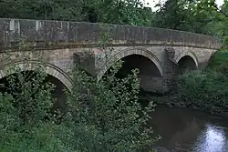 The stone bridge that crosses the Esk was rebuilt in 1992, having been destroyed by flood in the 1930s.