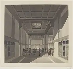 The Institut d’Égypte or Egyptian Scientific Institute was established by Napoleon Bonaparte in 1798 to facilitate French scholarship in Egypt.[6] In 2011, the Institute caught fire during protests, and 192,000 books and journals were damaged or lost.[44] This included the 24-volume Description de l’Égypte or Description of Egypt, a handwritten work that contained observations by over 150 French scholars and scientists begun between 1798 and 1801 during French occupation in Egypt. In 2012, the institute was reopened after extensive restoration.[45] Works that had not been damaged in the fire were returned, as well as donated collections.[45] The restored Institute is two levels.[46] The first houses a reading area complete with computers, and the second level comprises lecture and seminar halls, meeting rooms, a lounge for high-profile guests, an event hall and a main hall which includes the library.[46]