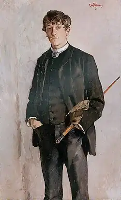 Peterssen is also known for his portraits. In Munich he painted some of his best portraits, of artist friends such as Harriet Backer and Hans Heyerdahl and of the German painters Anton Windmaier and Adolf Heinrich Lier. He painted Princess Anna Elisabeth Reuss at Schloss Schleiz in Gera during 1878.[2]