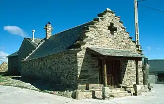 The village is typical of mountain villages of upper Bierzo, with houses built from and covered in slate (the typical building material of the region). Another characteristic of the homes are the street-facing wooden balconies, that sometimes reach outside of an outdoor staircase.