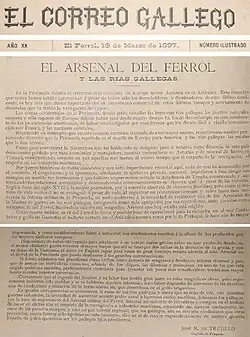 El Correo Gallego is a Galician newspaper founded in Ferrol, Spain, by José María Abizanda in 1878. In 1938 its owner, Juan Sáenz-Díez García, moved the daily to Santiago de Compostela;[1] since then the paper has been headquartered there.[2][3] The publisher of the daily is Editorial Compostela S.A.[3]