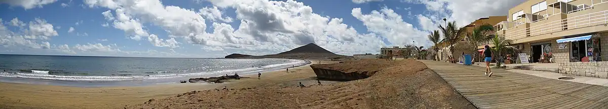 The town is situated near the largest natural beaches of Tenerife, the Playa Grande and the Playa La Tejita. Between the beaches is La Montaña Roja ("The Red Mountain"), a volcanic cone that is a protected natural reserve under the category of natural monument. The mountain is approximately 1 kilometer in diameter, conformed by successive explosions fruit of the violent vaporization of the sea waters.